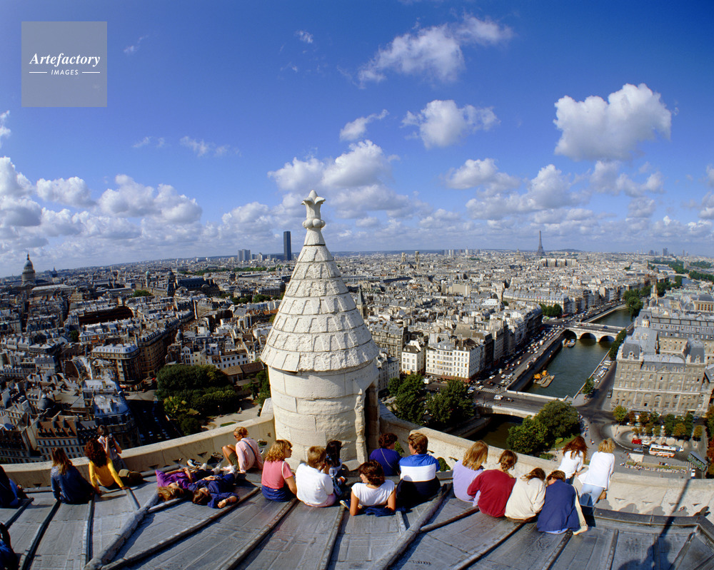 ノートルダム大聖堂,ノートルダム寺院,ノートルダム聖堂,セーヌ川,ゴシック建築,屋上,観光客,エッフェル塔