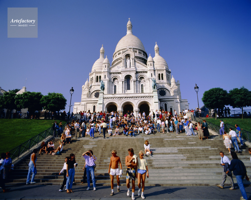 モンマルトルの丘,サクレ・クール寺院,石段,観光客