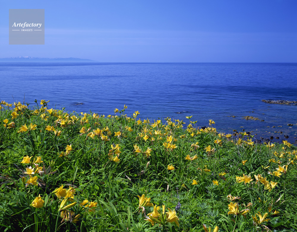 | 作品タイトル | エゾゼンティカ咲く白浜海岸から雄冬岬と暑寒別岳 | モデルリリース | なし | |