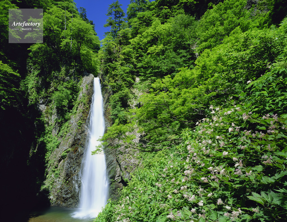 | 作品タイトル | オニシモツケ咲く暗門滝・第2滝。白神山地 世界遺産 | モデルリリース | なし | |