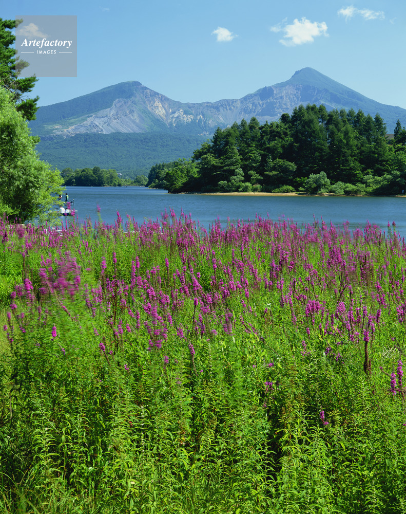 | 作品タイトル | ミソハギ咲く桧原湖から磐梯山(会津富士)。磐梯高原 | モデルリリース | なし | |