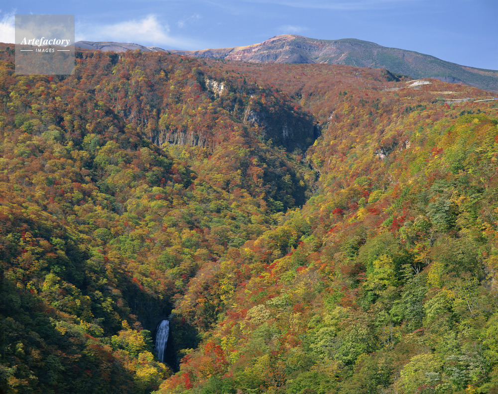 | 作品タイトル | 紅葉に彩られた不動滝と蔵王山 | モデルリリース | なし | |