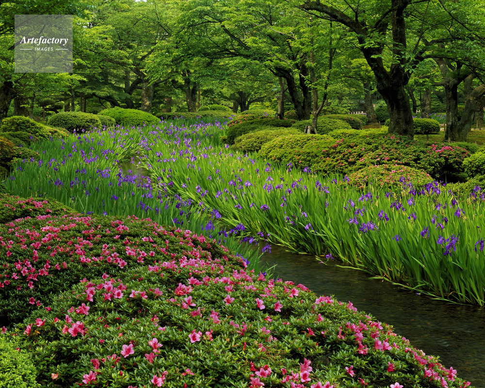 | 作品タイトル | サツキとカキツバタ咲く兼六園 名勝庭園 | モデルリリース | なし | |