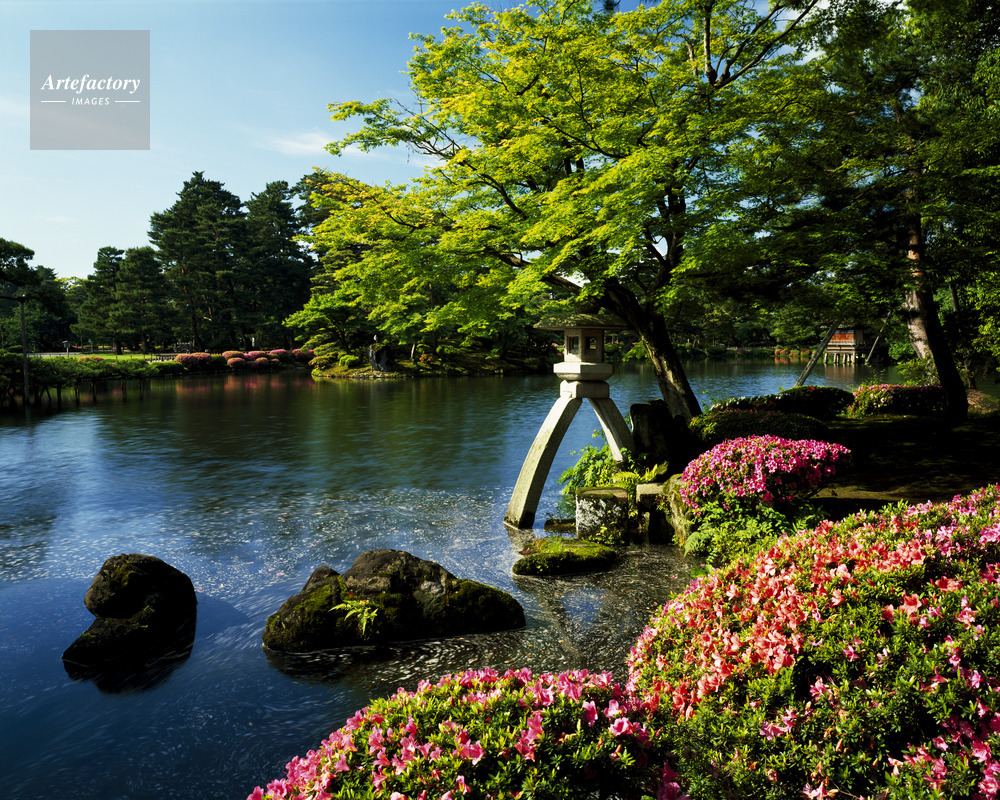 | 作品タイトル | サツキ咲く兼六園ことじ灯籠 名勝庭園 | モデルリリース | なし | |