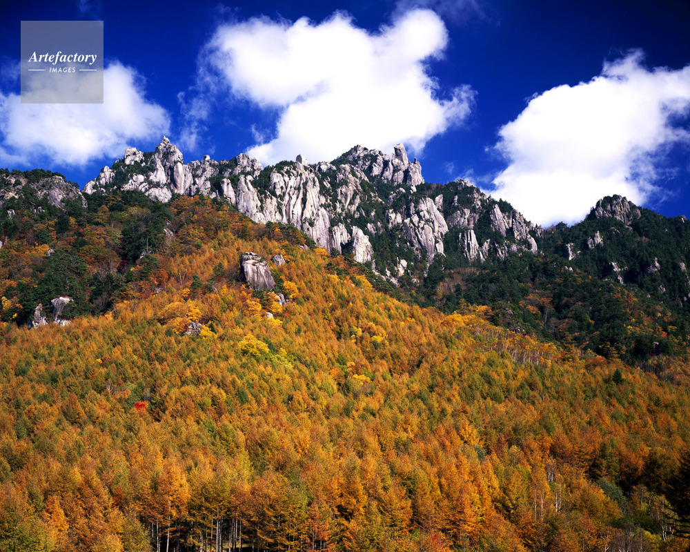 | 作品タイトル | 瑞牆の森のカラマツ林黄葉と瑞牆山 | モデルリリース | なし | |