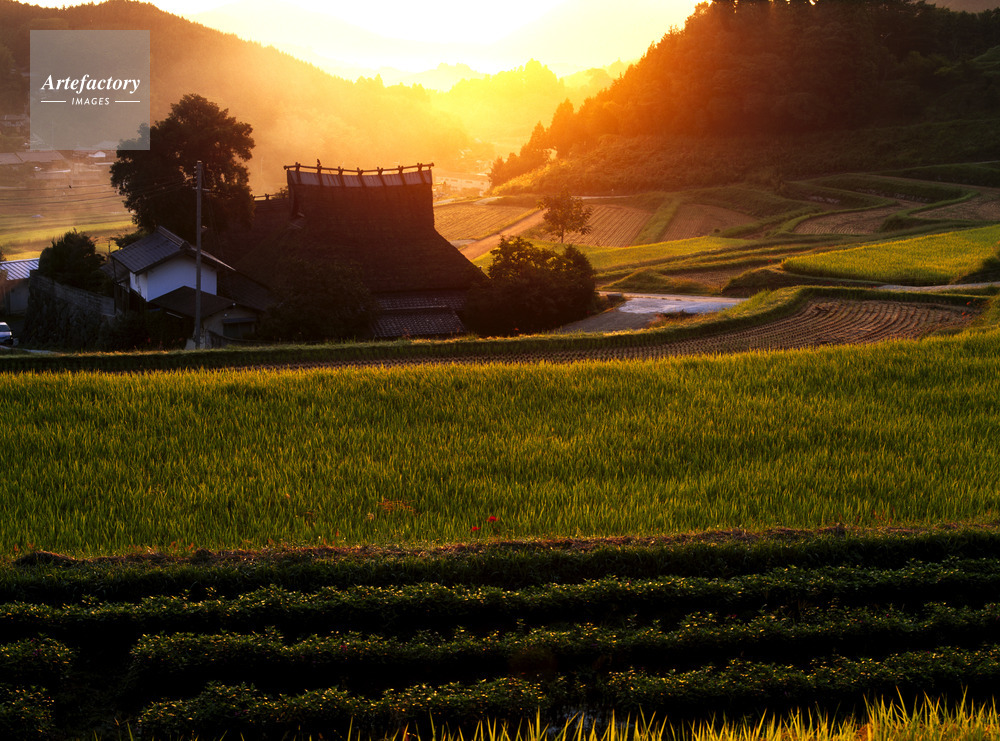 | 作品タイトル | 長谷の棚田、蒸れる稲田の朝景 棚田百選 | モデルリリース | なし | |