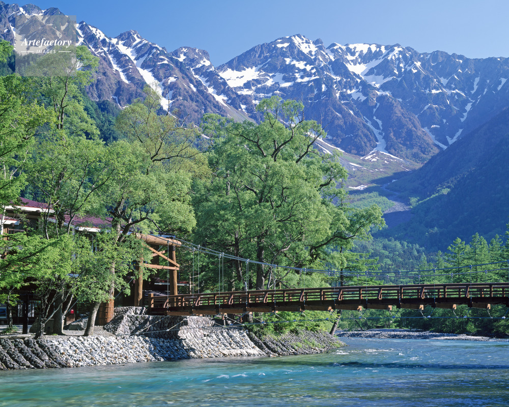 | 作品タイトル | 新緑の梓川より河童橋と穂高連峰 名勝・国指定天然記念物 | モデルリリース | なし | |