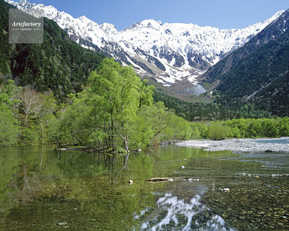 | 作品タイトル | 梓川河畔のケショウヤナギ新緑と穂高連峰。上高地 名勝・国指定天然記念物 | モデルリリース | なし | |