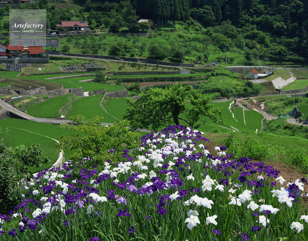 | 作品タイトル | ショウブ咲く井仁棚田 棚田百選 | モデルリリース | なし | |