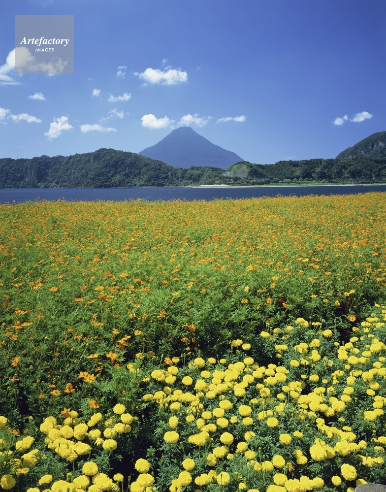| 作品タイトル | マリーゴールドとキバナコスモス咲く池田湖畔から開聞岳(薩摩富士) | モデルリリース | なし | |