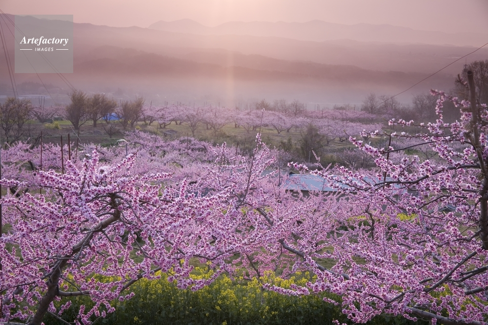 | 作品タイトル | モモの花咲く新府朝景 | モデルリリース | なし | |