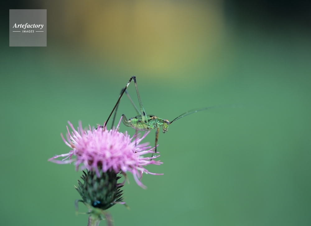 | 作品タイトル | 野原アザミと脚黒露虫(アシグロツユムシ)の幼虫 | モデルリリース | なし | |