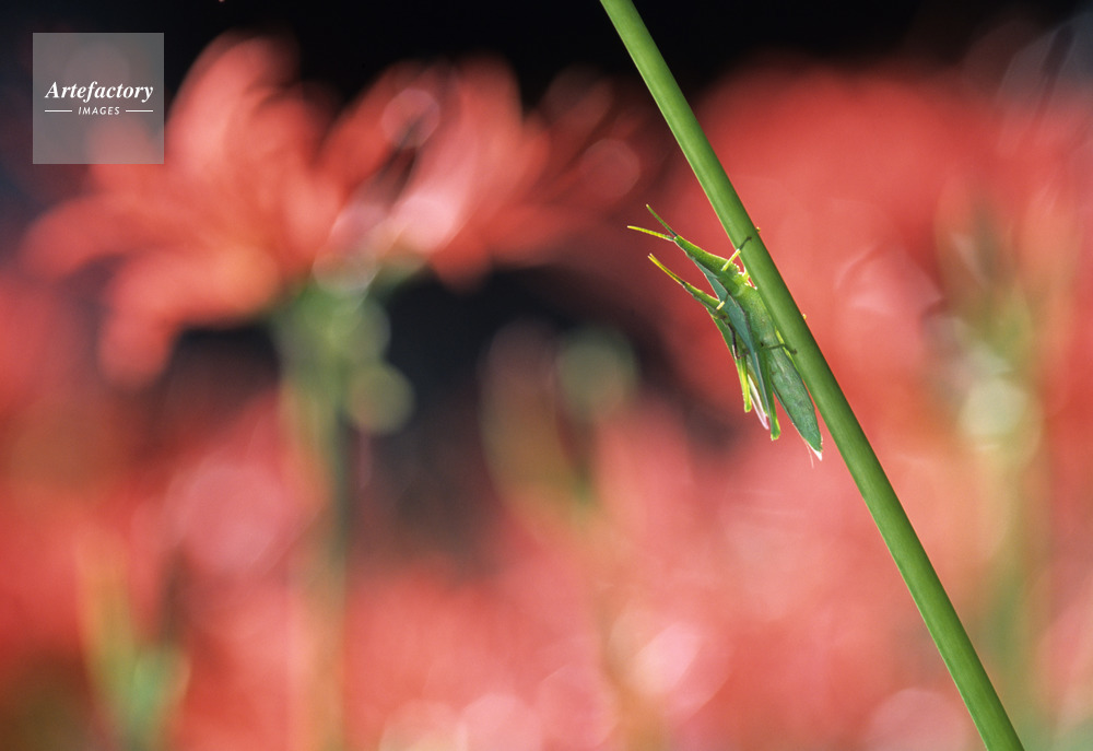 | 作品タイトル | 彼岸花と負飛蝗(オンブバッタ) | モデルリリース | なし | |