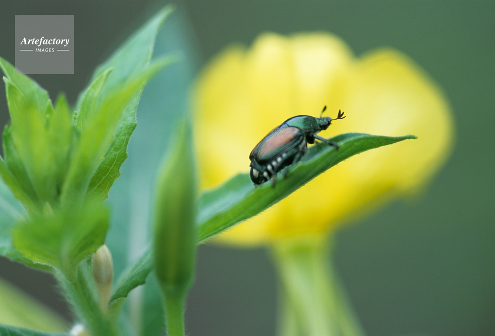 | 作品タイトル | 雌待宵草(メマチヨイグサ)と豆黄金虫(マメコガネ) | モデルリリース | なし | |