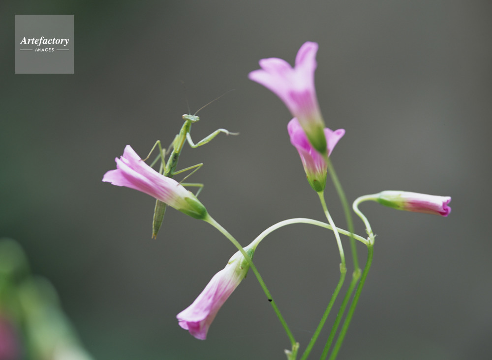 | 作品タイトル | 紫カタバミと蟷螂(オオカマキリ)の幼生 | モデルリリース | なし | |