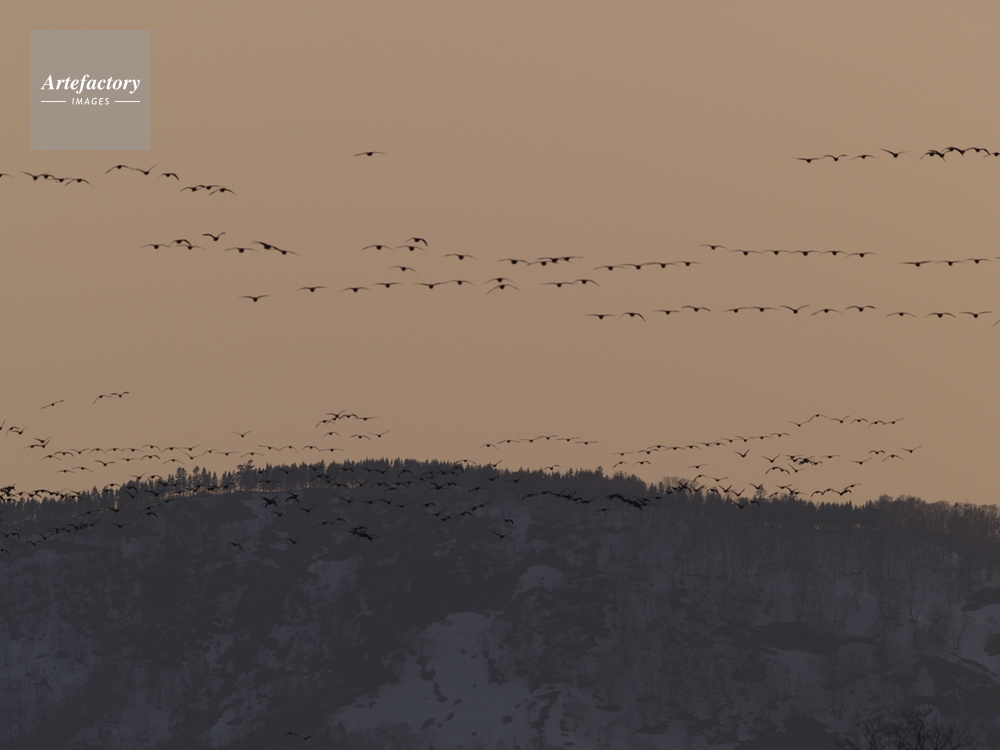 | 作品タイトル | 夕暮れ時、一斉に沼に戻ってきた雁の群れ | モデルリリース | なし | |