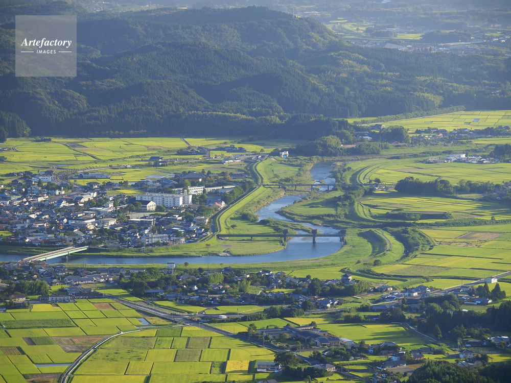 | 作品タイトル | えびの市内の田んぼと川内川 | モデルリリース | なし | |