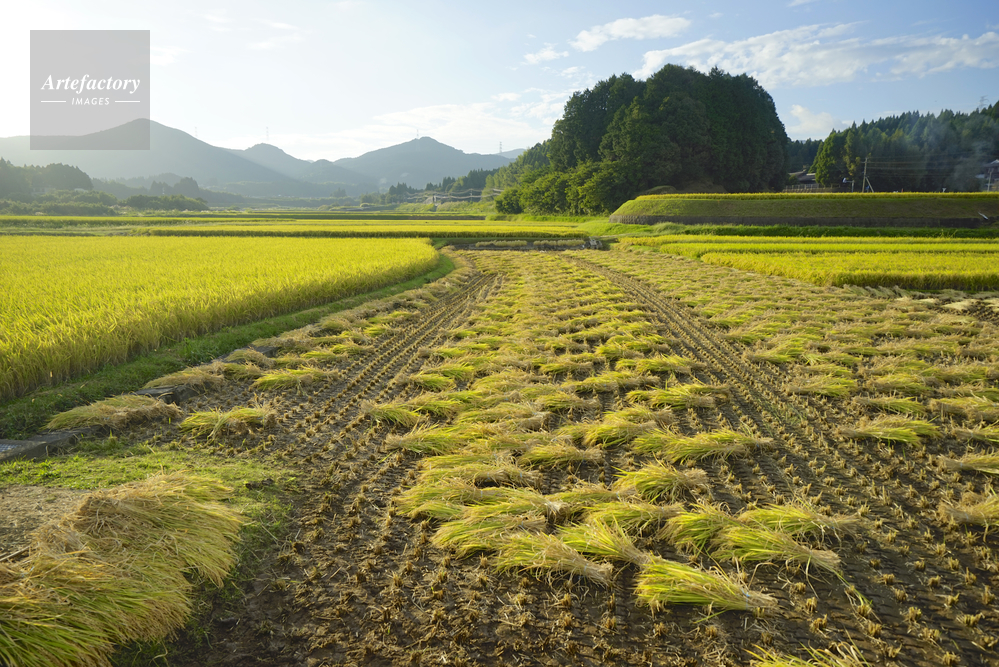 | 作品タイトル | 米の収穫(ひのひかり)、掛け干しの準備 | モデルリリース | なし | |