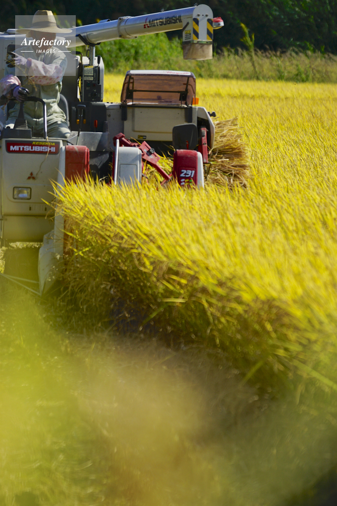 | 作品タイトル | コンバインによる米の収穫(ひのひかり) | モデルリリース | なし | |