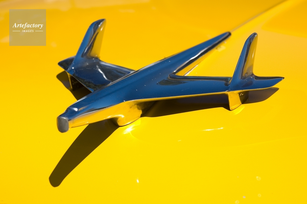 | キャプション | This ornament from a bright yellow 1956 Chevy shows the influence of the streamline design aesthetic. Captured in front of my booth at the Hermosa Artwalk on upper Pier Ave. | 制限事項 | ||