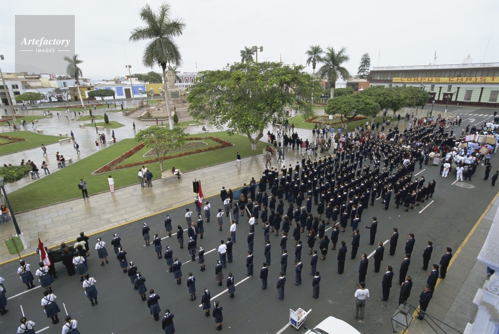 | キャプション | A weekly parade and flag-raising ceremony held in the Plaza de Armas, in the northern city of Trujillo. | 制限事項 | ||