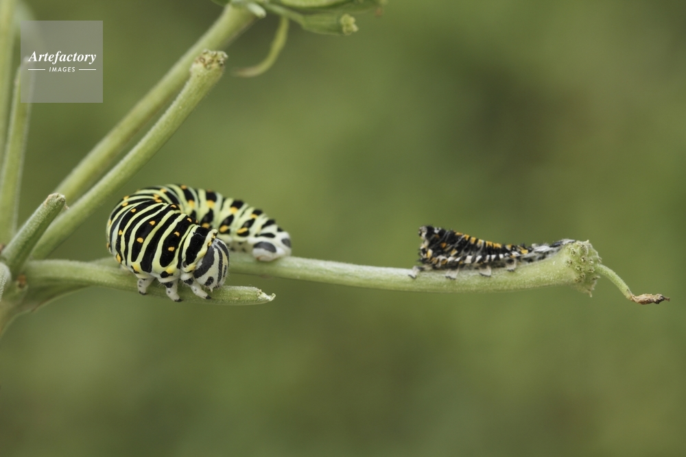 | 作品タイトル | (2)キアゲハ5令幼虫、脱皮殻を食べるため体の向きを変える | モデルリリース | なし | |