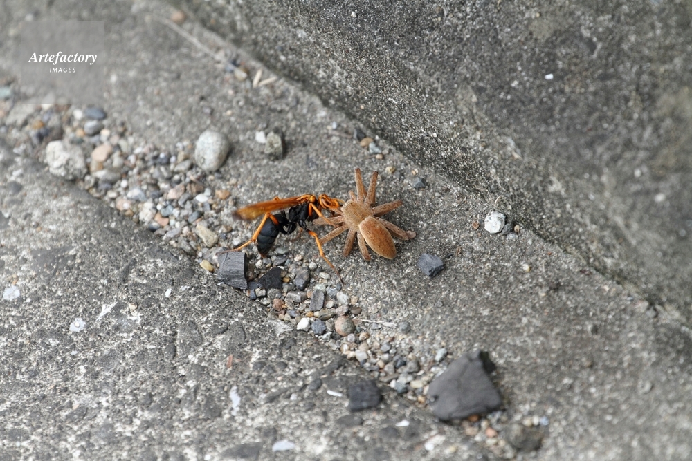 | 作品タイトル | イオウイロハシリグモを運ぶベッコウクモバチ | モデルリリース | なし | |