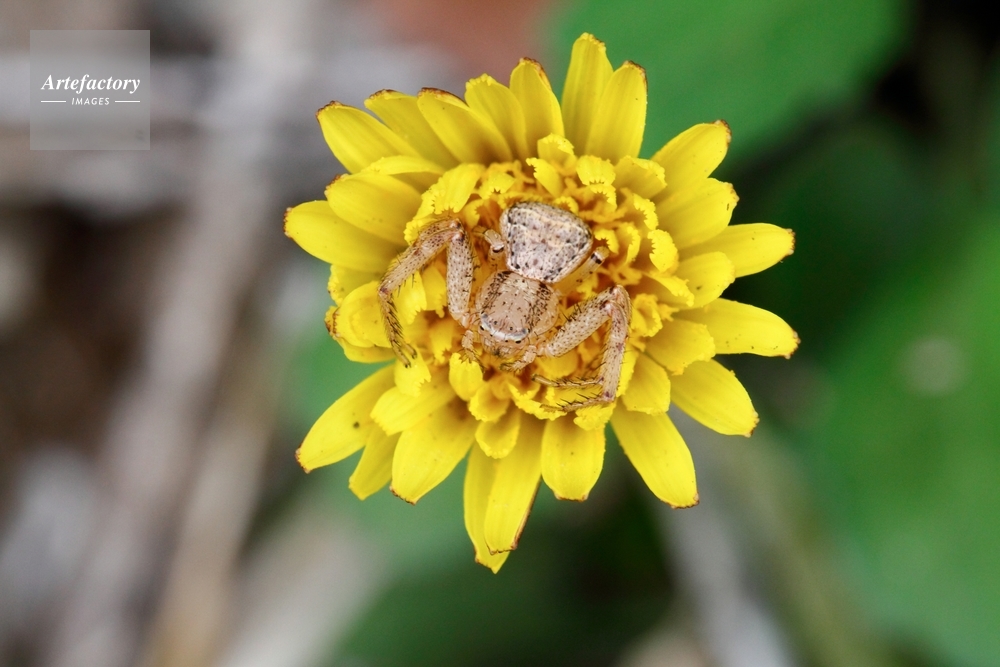 | 作品タイトル | タンポポの花の中で獲物を待つヤミイロカニグモ | モデルリリース | なし | |