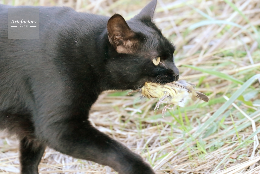 | 作品タイトル | アオジを捕まえた野良猫 | モデルリリース | なし | |