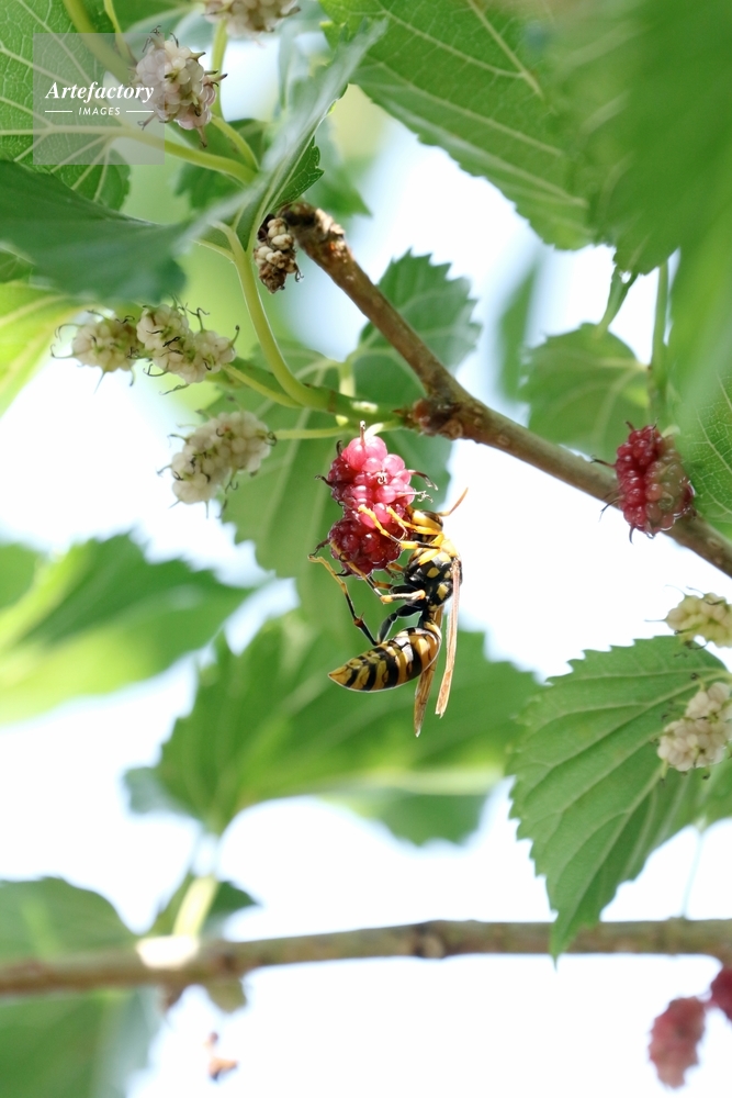 | 作品タイトル | クワの実のジュースを吸うセグロアシナガバチ | モデルリリース | なし | |