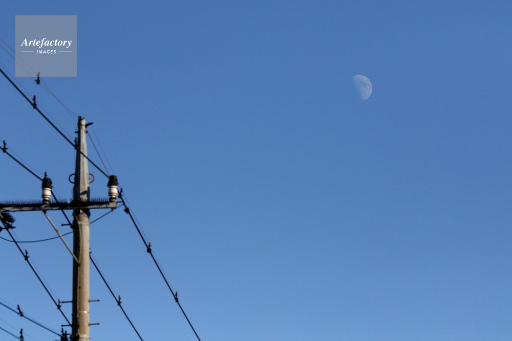| キャプション | 午後、南東に見える半月は高くなりながら南の方へ動いていきます。月齢9.5 | 制限事項 | ||