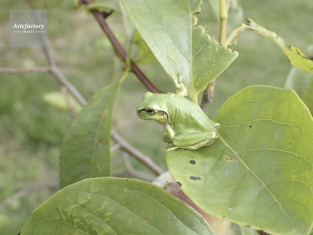 | キャプション | ニホンアマガエル 柿の葉に止まる オトシブミ科 | 制限事項 | ||