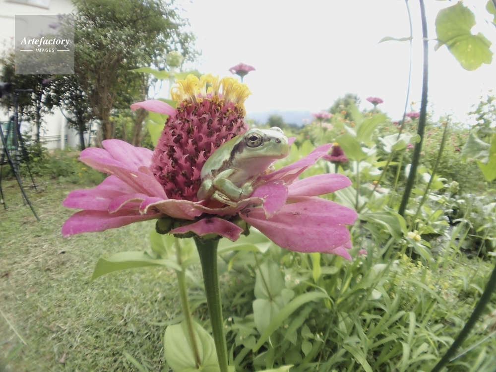 | キャプション | ヒャクニチソウ花上で休む アマガエル科 | 制限事項 | ||