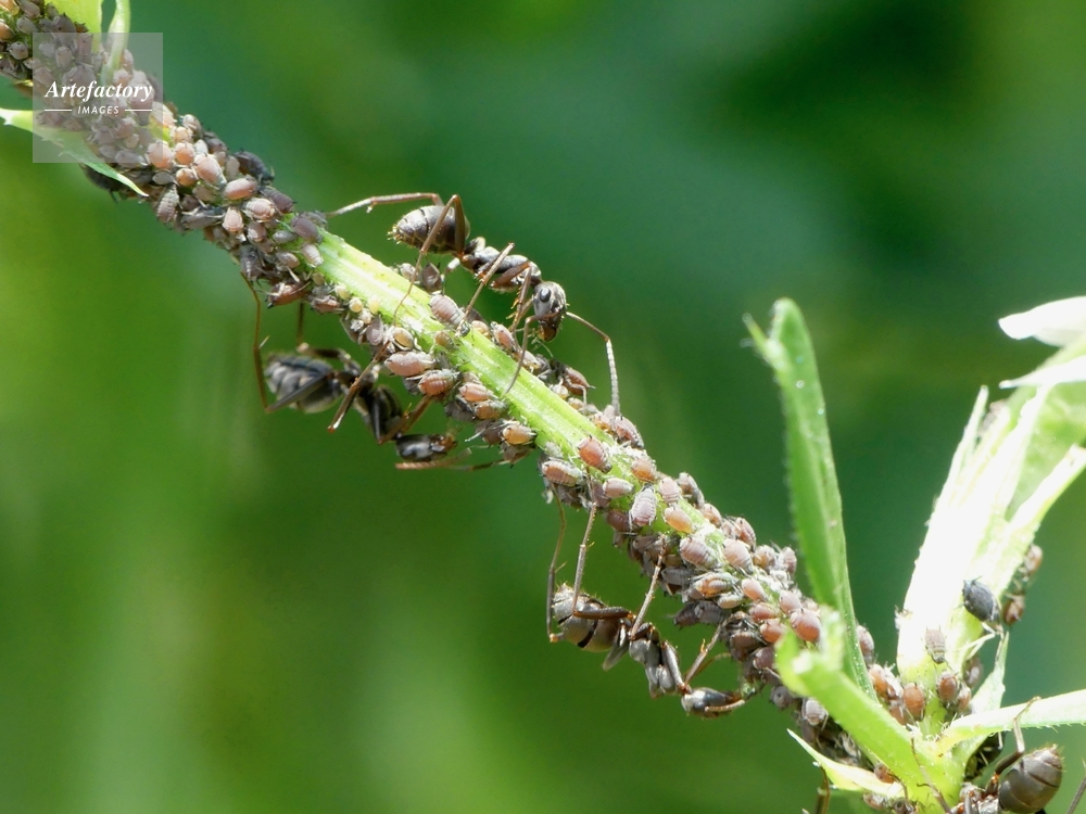 | キャプション | カラスノエンドウにたかるマメアブラムシから甘露を受け取る アリ科 | 制限事項 | ||