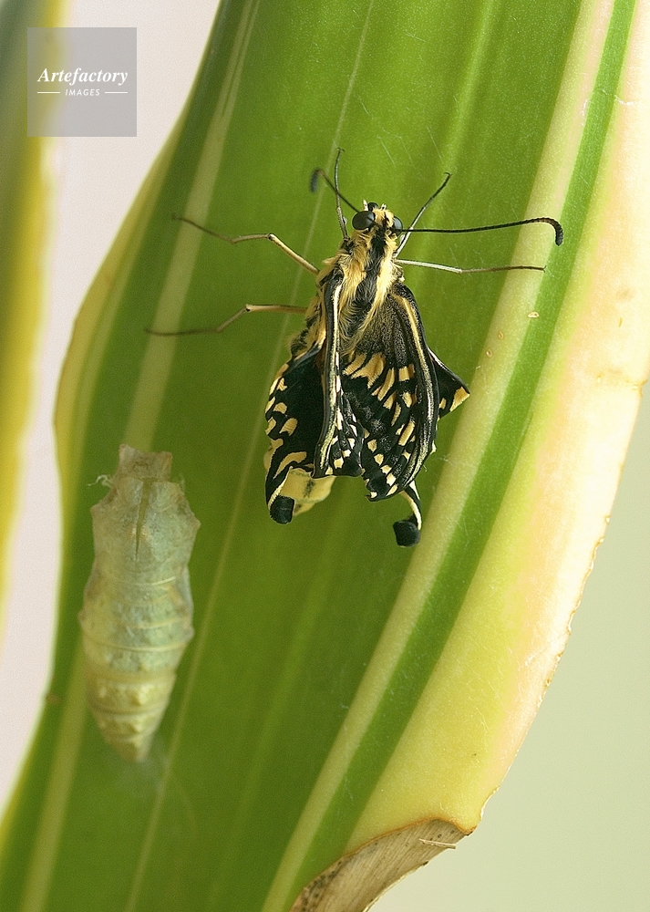 | 作品タイトル | キアゲハ サナギからの脱皮、羽化の瞬間 AM 9 :50~AM 10:05の変化 | モデルリリース | なし | |