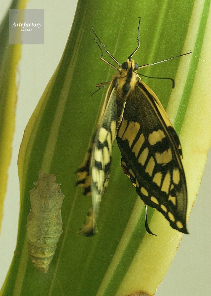 | 作品タイトル | キアゲハ サナギからの脱皮、羽化の瞬間 AM 9 :50~AM 10:05の変化 | モデルリリース | なし | |