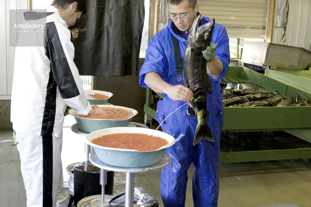 | 作品タイトル | サケの養殖・採卵後卵に精子をかける | モデルリリース | なし | |