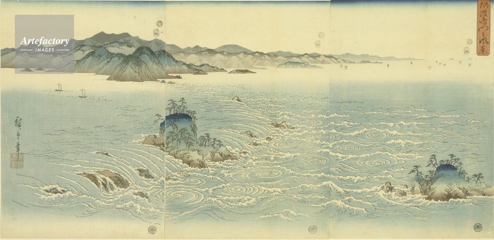 | キャプション | あわなるとのふうけい(せつげっかのうち はな),1857(安政4),大判錦絵(3枚続) | 制限事項 | ||