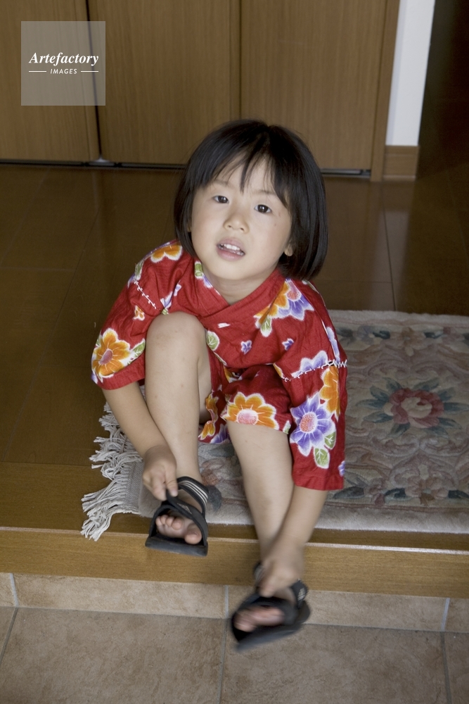 | 作品タイトル | 甚平を着てサンダルを履く女児 | モデルリリース | あり | |