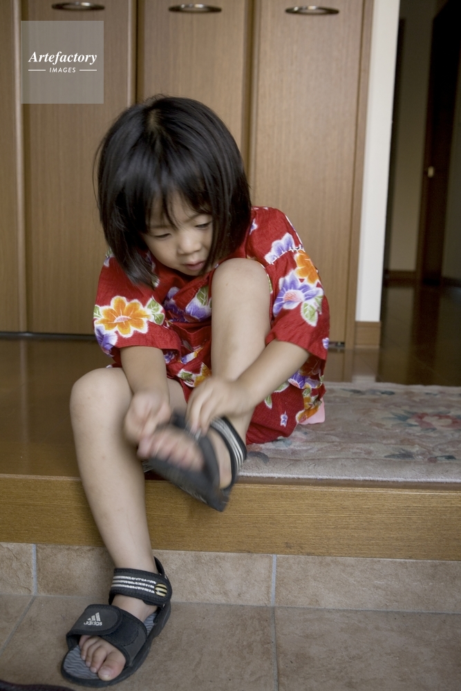 | 作品タイトル | 甚平を着てサンダルを履く女児 | モデルリリース | あり | |