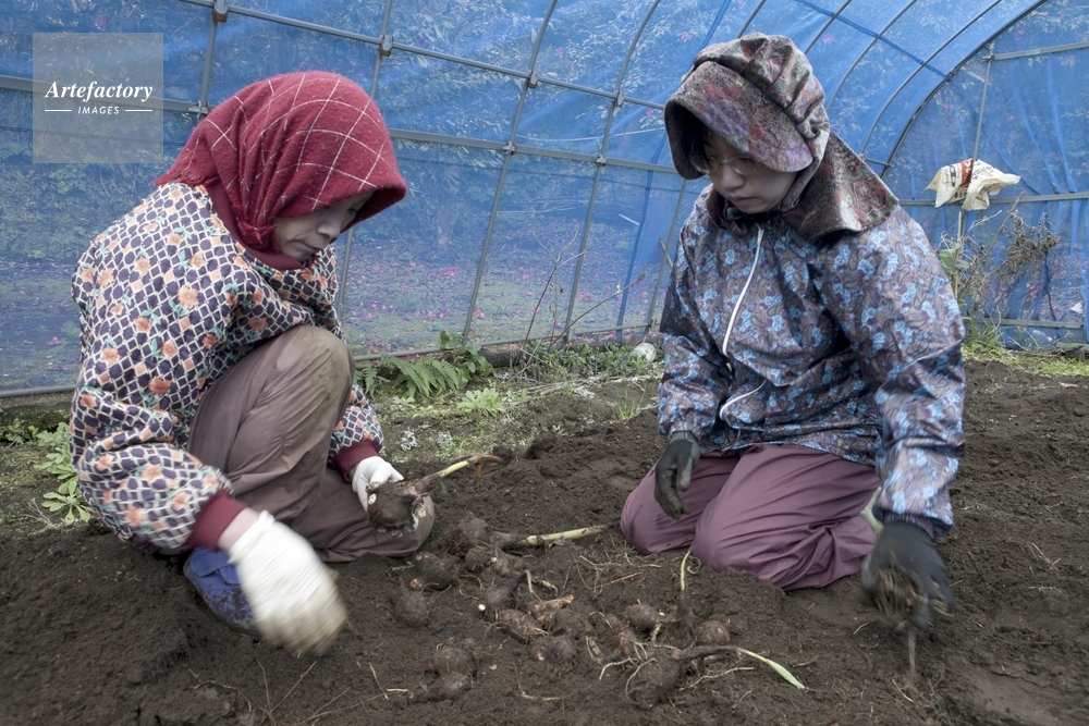 | 作品タイトル | ハウスの中で里いもを収穫する | モデルリリース | あり | |