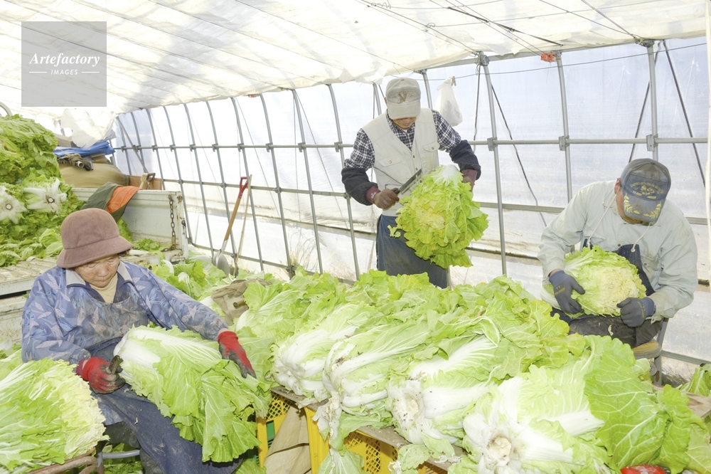| 作品タイトル | 伝統野菜花芯山東菜の出荷準備 | モデルリリース | あり | |
