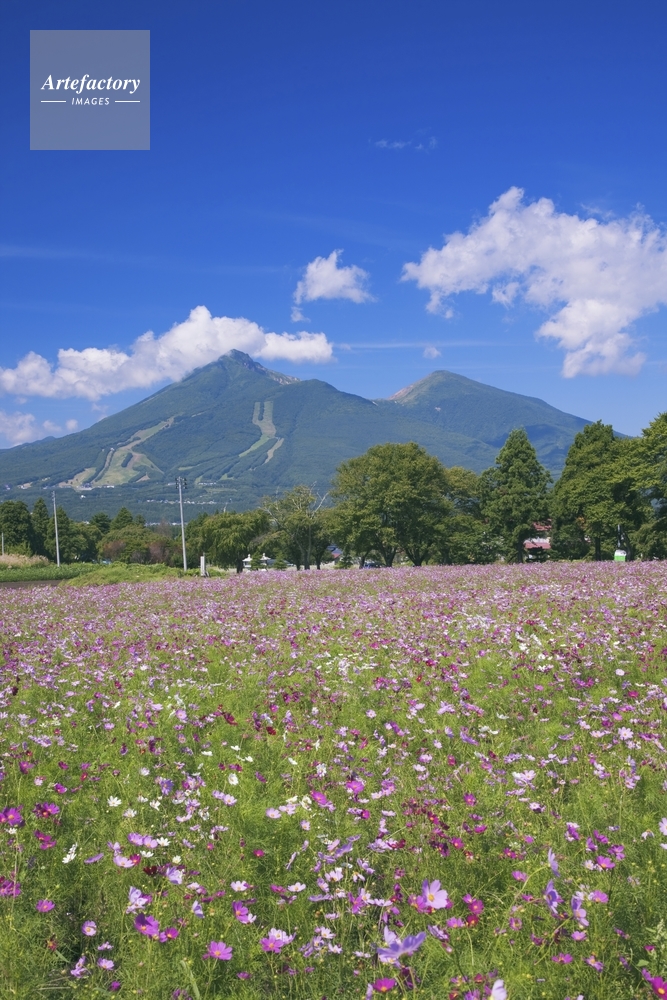 | 作品タイトル | コスモスと磐梯山 会津富士 | モデルリリース | なし | |