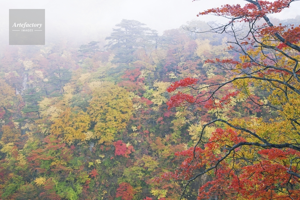 | 作品タイトル | 紅葉の鳴子峡朝霧 | モデルリリース | なし | |