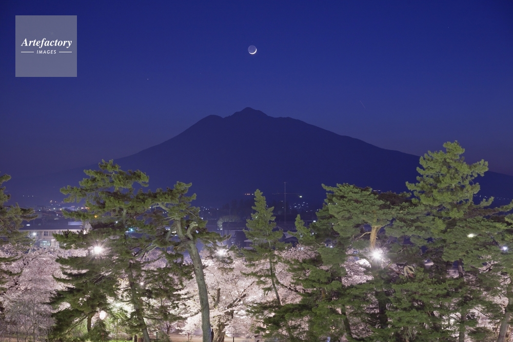 | 作品タイトル | 桜咲く弘前城 本丸より岩木山夕景 | モデルリリース | なし | |