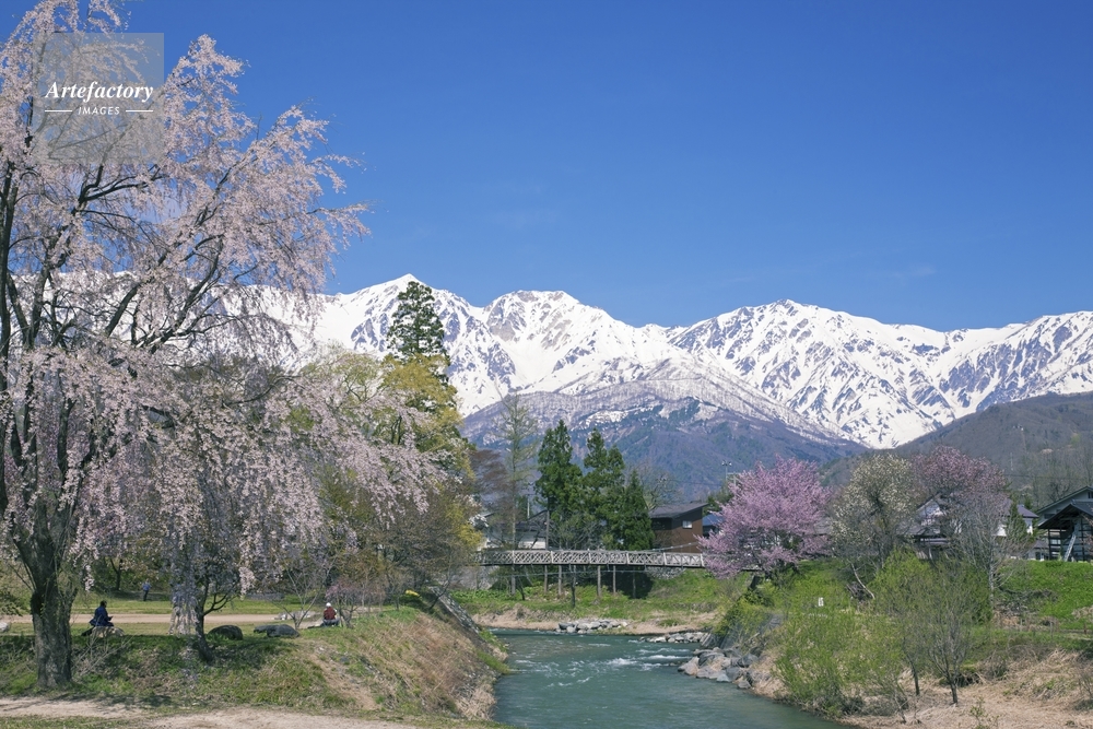 | 作品タイトル | 桜咲く大出公園より姫川と白馬連峰 | モデルリリース | なし | |