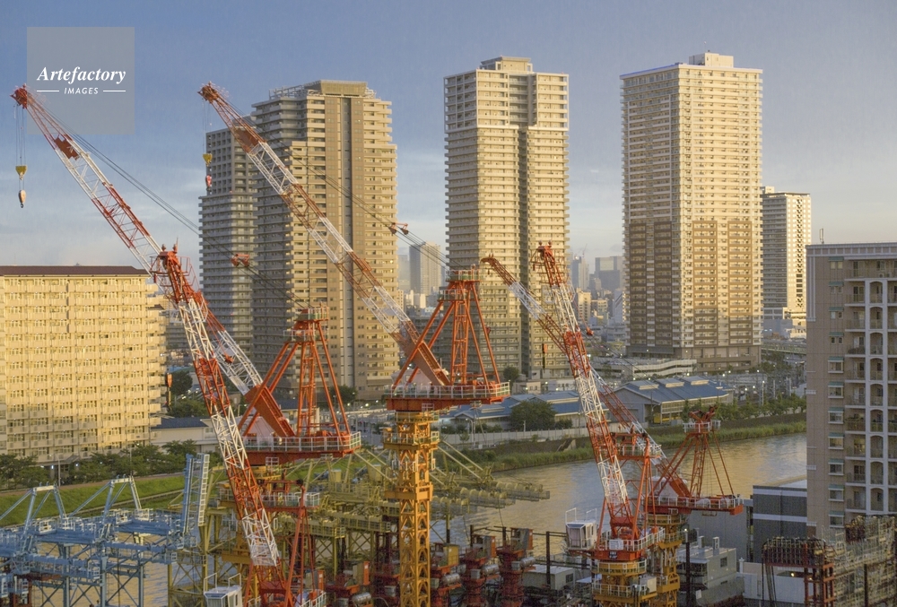 | 作品タイトル | 夕日をあびる隅田川沿いの工事現場と高層住宅 | モデルリリース | なし | |