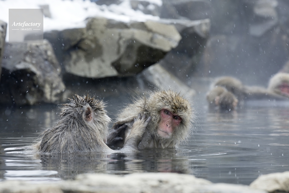 | キャプション | 温泉に入るニホンザルの母子 母ザルの毛づくろい | 制限事項 | ||