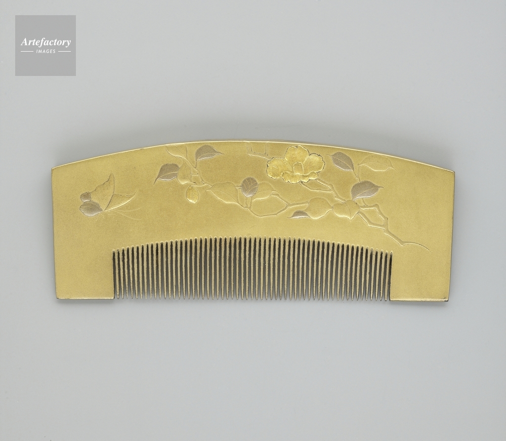 | 作品タイトル | Peigne arrondi a decor de camelia et papillons | モデルリリース | なし | |
