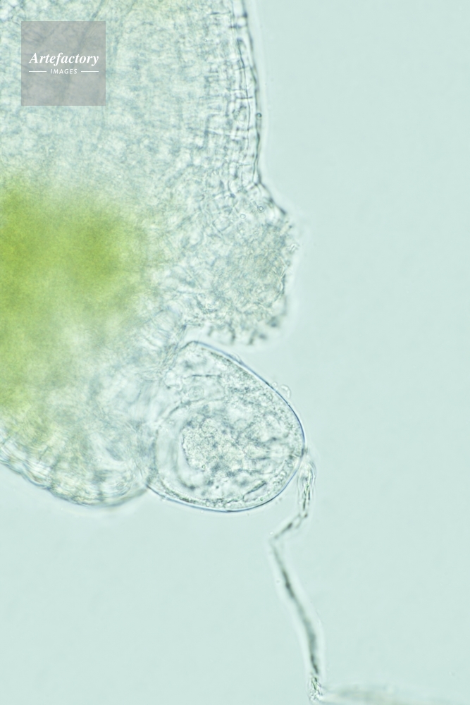 | キャプション | 胚珠から飛び出している胚嚢(卵装置)に達した花粉管 | 制限事項 | ||